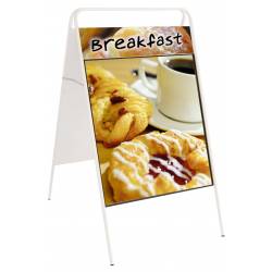 Caballete para cartel en foam, forex o similar de 500x700 mm. Fácil de poner y quitar el cartel (espesor máximo de 9 mm) en las ranuras de metal de la estructura y mostrarlo a 2 caras en áreas de alto tráfico. Ideal para su uso en centros comerciales, entradas de locales, ferias o salas de exposición. El precio NO incluye el cartel (consulte precio)