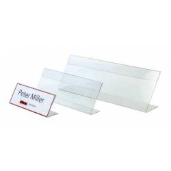 Soporte de sobremesa de PVC para nombres, carteles, etc Fabricado en PVC de 0.5 mm. Disponible en 3 tamaños Se vende en pack indivisibles de 20 unidades