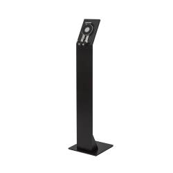 Moderno y elegante soporte para tablet fabricado en metal Incluye cerradura. La tablet (NO incluida) se introduce de forma fácil y queda asegurada por un soporte de acero con sujeción en tres puntos y puede clocarse en horizontal o vertical. Fácilmente personalizable (NO incluido) por serigrafía o con vinilo. Medidas: Ancho (mm) 300 Altura (mm) 1150 Fondo...