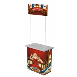 Mostrador de promoción fabricado en cartón con cartel superior. Fabricado en España con cartón ondulado de primera calidad y partes de PVC (tubos para el cartel superior). No necesita herramientas para el montaje. El precio NO incluye la impresión