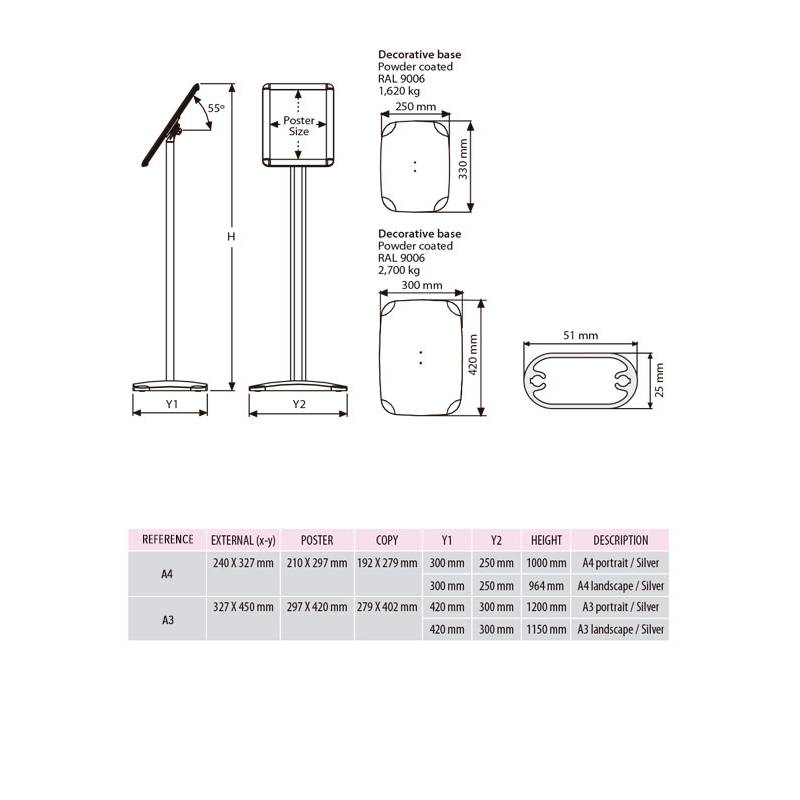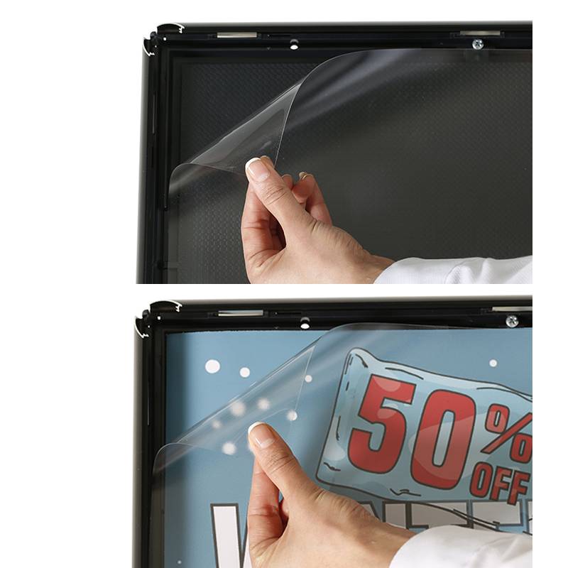 Portagráfica o portamenú negro a una cara, para gráfica (no incluida) tamaño A4.