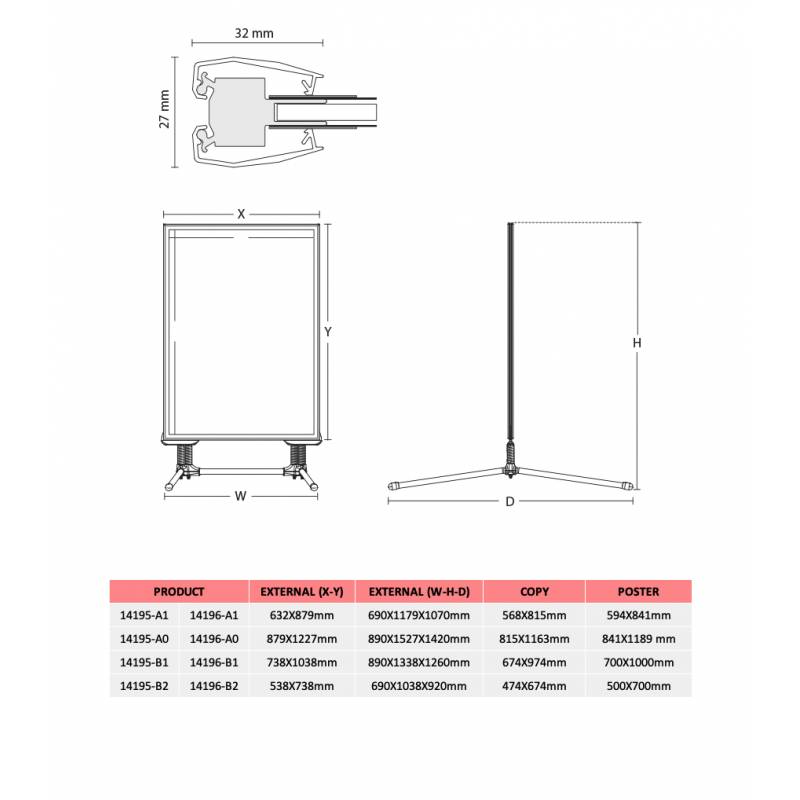 CABALLETE PARA EXTERIOR CON PATAS EXTRA LARGAS PARA CARTELES DE 70x100 cm.