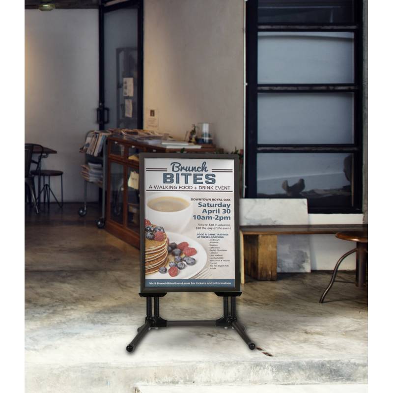 CABALLETE DE COLOR NEGRO PARA EXTERIOR CON PATAS EXTRA LARGAS PARA CARTELES DE 50x70 cm.