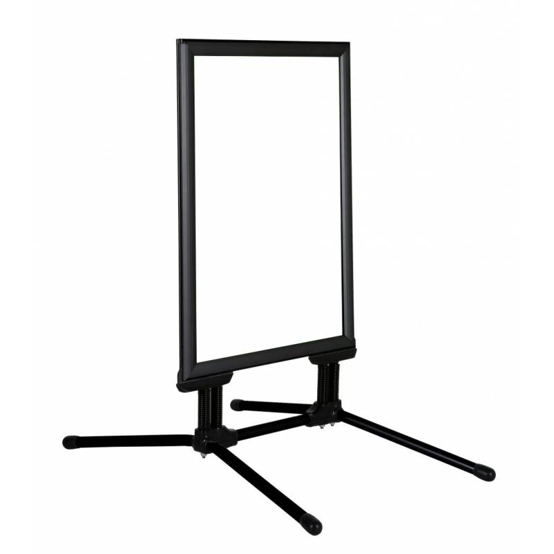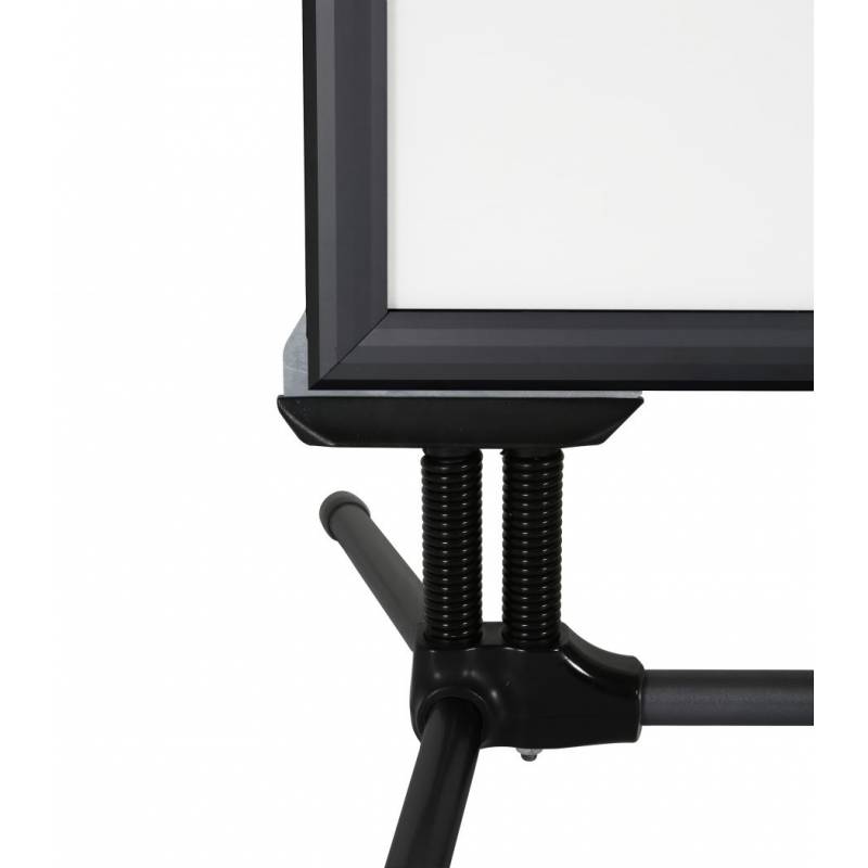 Caballete a 2 caras fabricado en aluminio de color negro de 44 mm con muelles en su parte inferior para facilitar su inclinación y conseguir una menor resistencia al viento