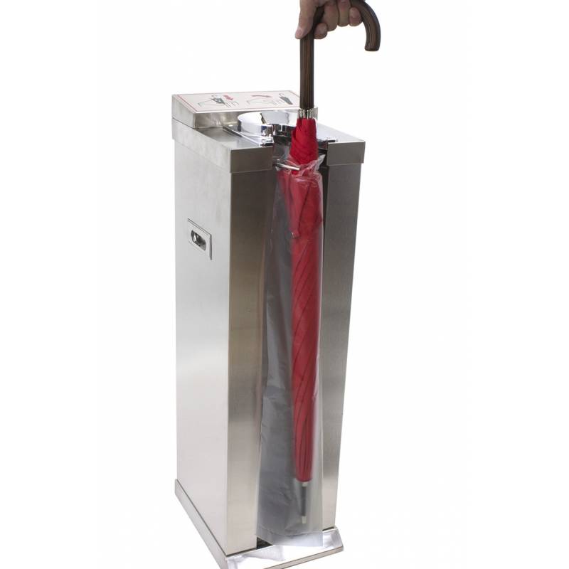 Inserte el paraguas a través del orificio superior y tire de él horizontalmente hacia afuera.