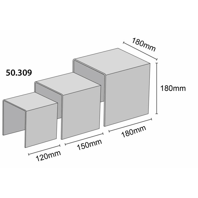 Conjunto compuesto por 3 piezas de diferentes altos y anchos que pueden utilizarse de forma conjunta o separada, es perfecto para escaparates.