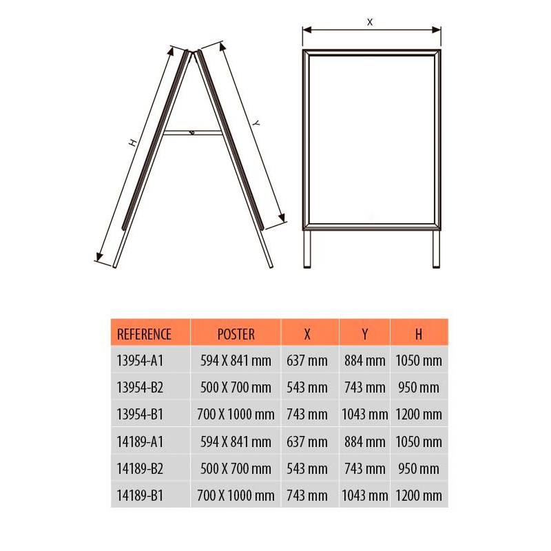Caballete para publicidad A1 (594X841 milimetros) de doble cara.