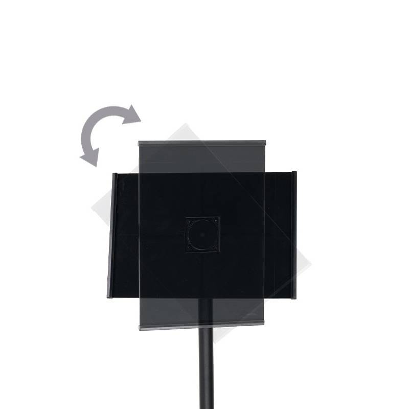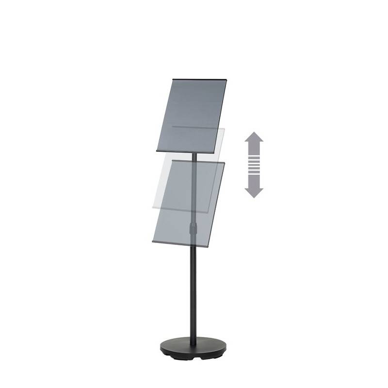 Su diseño es la clave de su éxito. La altura es totalmente regulable, permitiendo que ajuste el contenido al punto de visión óptimo del cliente, mejorando la experiencia de lectura y reforzando su comunicación visual. Además, su base redonda es estable y está diseñada para soportar el alto tránsito sin tambalearse, asegurando que su mensaje permanezca siempre firme.