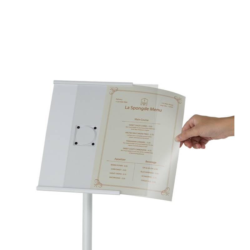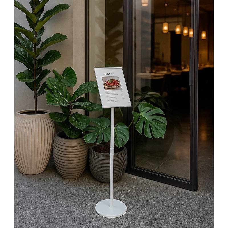 El Atril Portamenu Altura Regulable Base Redonda no es solo un soporte, es la herramienta esencial que proyecta profesionalidad en su negocio. Imagínelo destacando menús, promociones o información clave en la entrada de su restaurante, el lobby de su hotel o en un stand de feria.