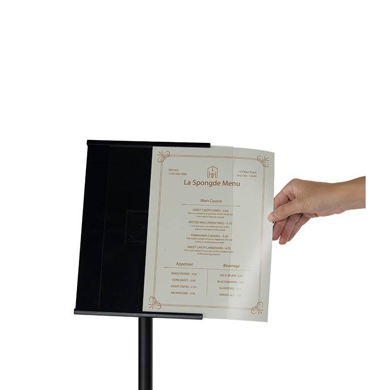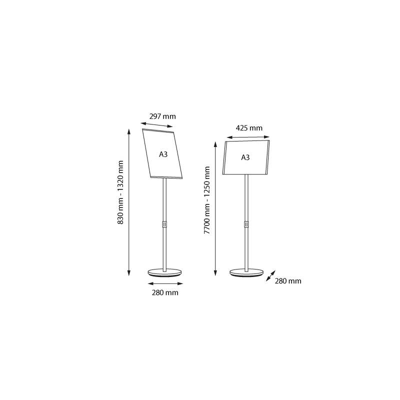 Utilizado como soporte de cartelería o expositor informativo, este portamenú regulable mejora la organización del punto de venta, y proyecta una imagen cuidada.