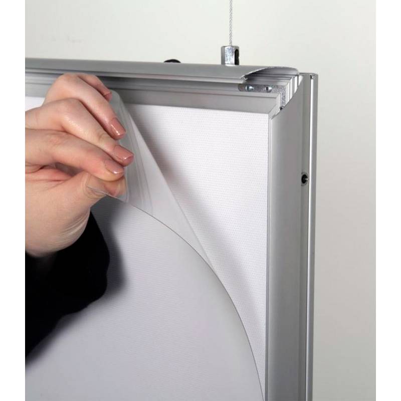 Marco de aluminio doble cara con luz LED, con marco ultrafino de 25 milímetros y sistema de apertura “click”.