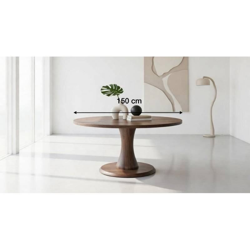 Mesa redonda de madera de acacia marrón oscuro, de diseño robusto y espacioso