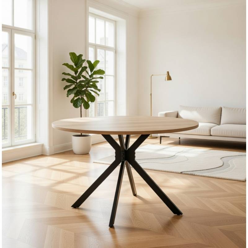 Mesa de diseño, armazón metálico con acabado negro, tapa de DM madera bilaminada.
