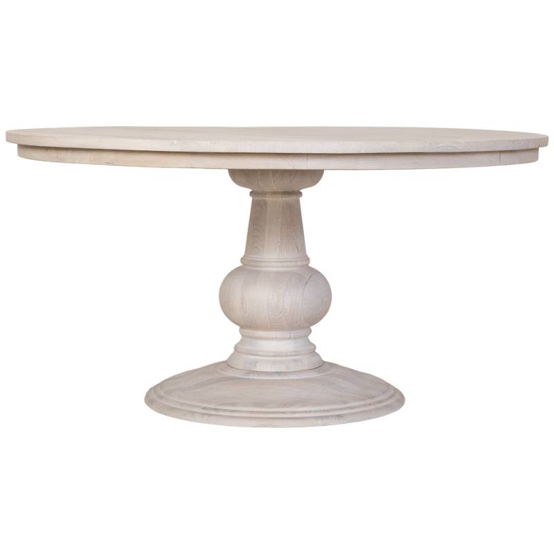 Mesa de comedor de Madera De Mango en acabado blanco, amplia y luminosa.
