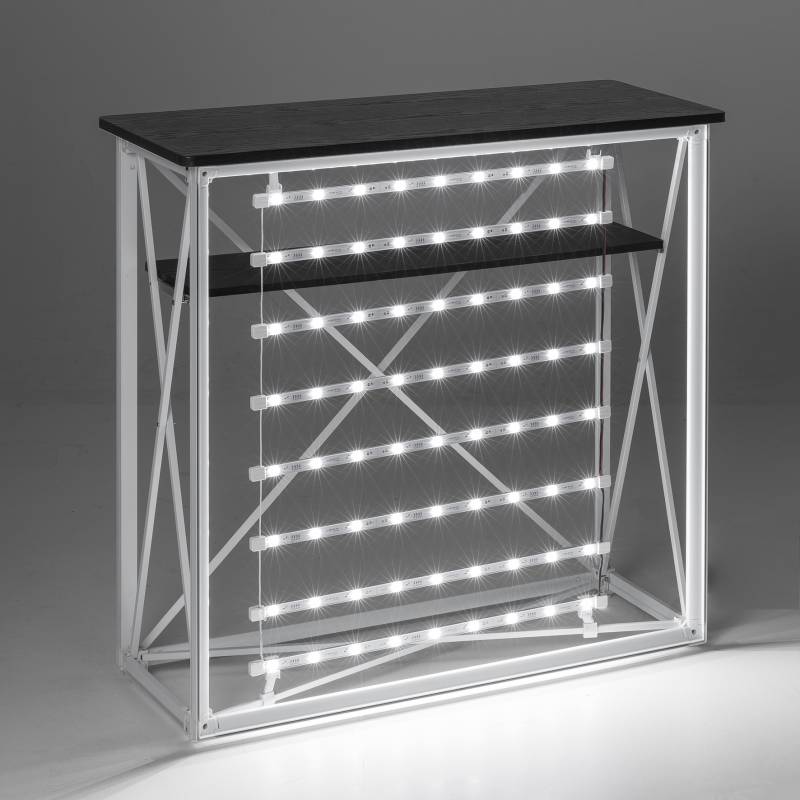 El mostrador no necesita herramientas, es ligero (15 Kg) y ultra fácil de llevar.