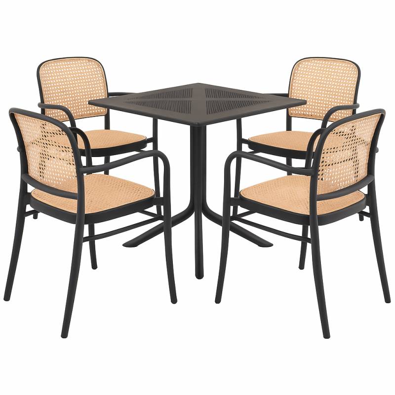 -4 Sillones y mesa de 80x80 cm, apilable, multiusos.