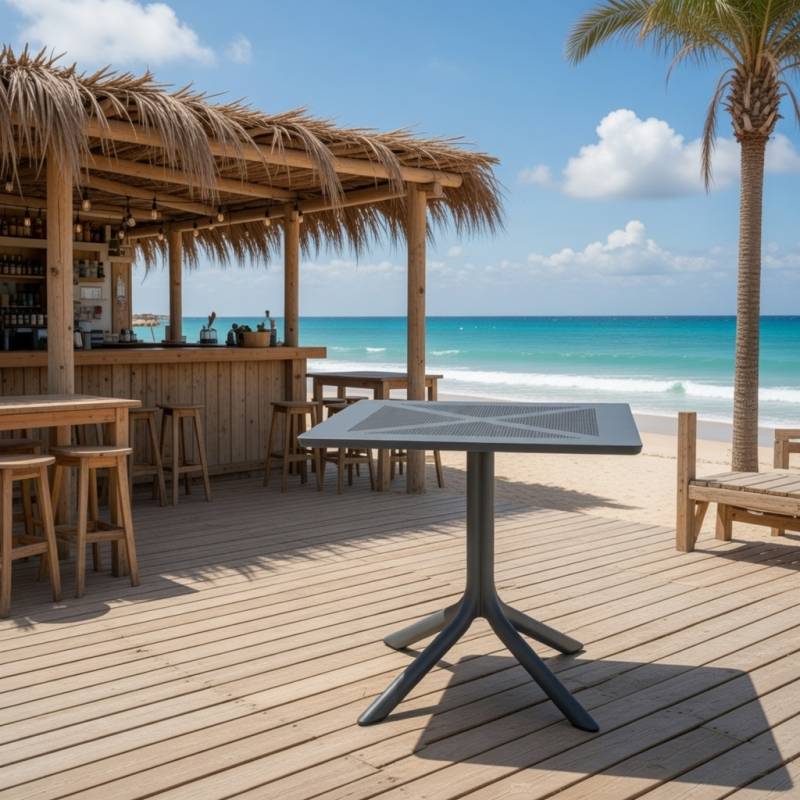 Mesa cuadrada en polipropileno de color negro, 80 x 80 cm.