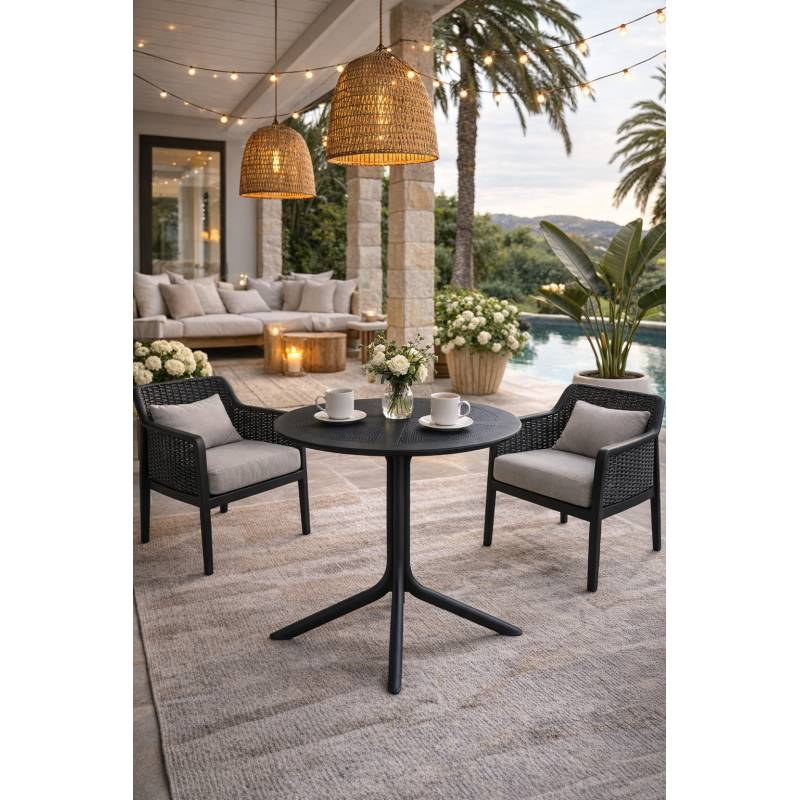 Mesa redonda en polipropileno de color negro diámetro 80 cm