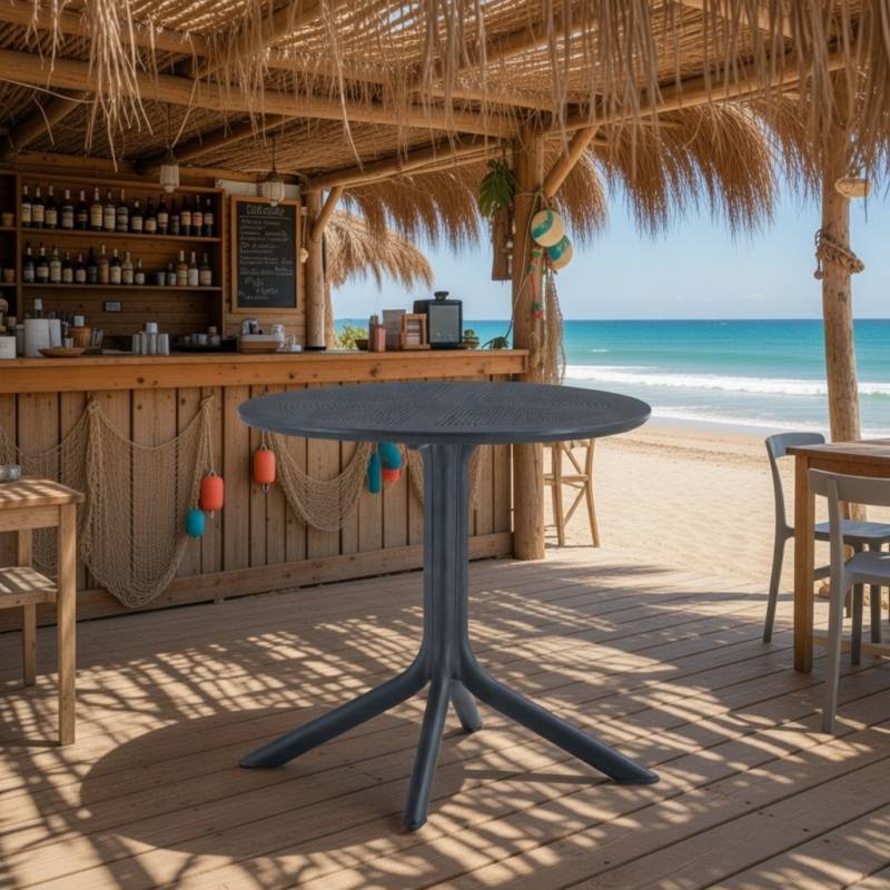 Mesa redonda en polipropileno de color negro diámetro 80 cm.