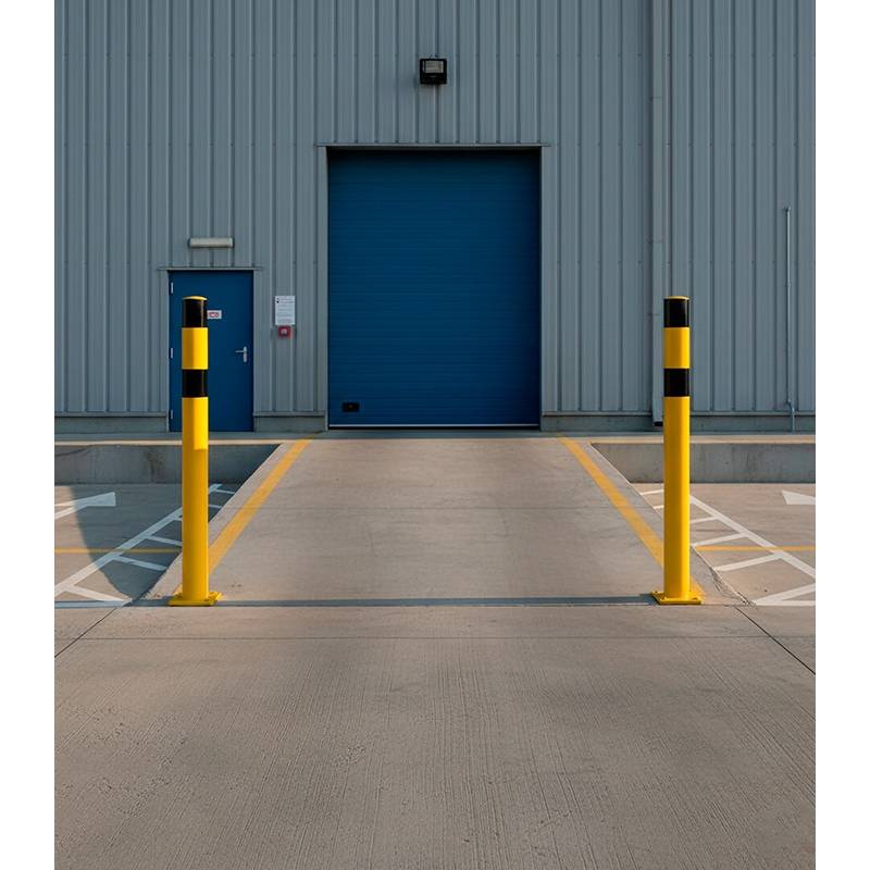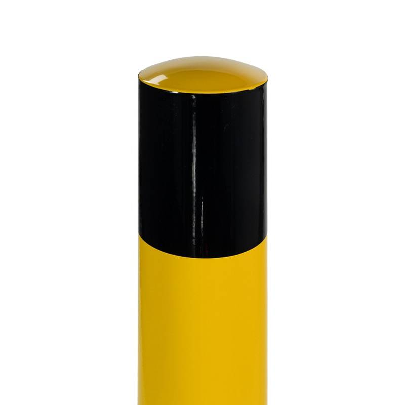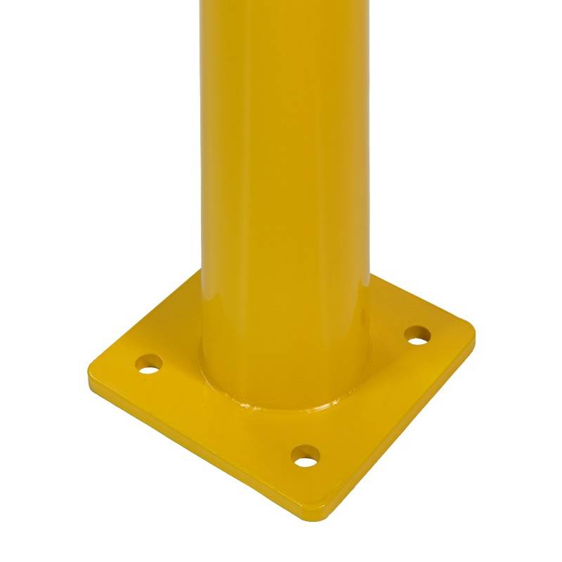 Su acabado en pintura epoxi amarilla asegura una máxima visibilidad y resistencia a la corrosión, mientras que las bandas negras no reflectantes aportan un contraste visual claro que refuerza la señalización de advertencia.
