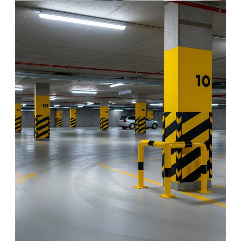 Fabricado en tubo de acero de Ø75 mm, ofrece una alta resistencia estructural y una larga durabilidad, actuando como defensa física ante golpes de carretillas, transpaletas u otros vehículos de trabajo.