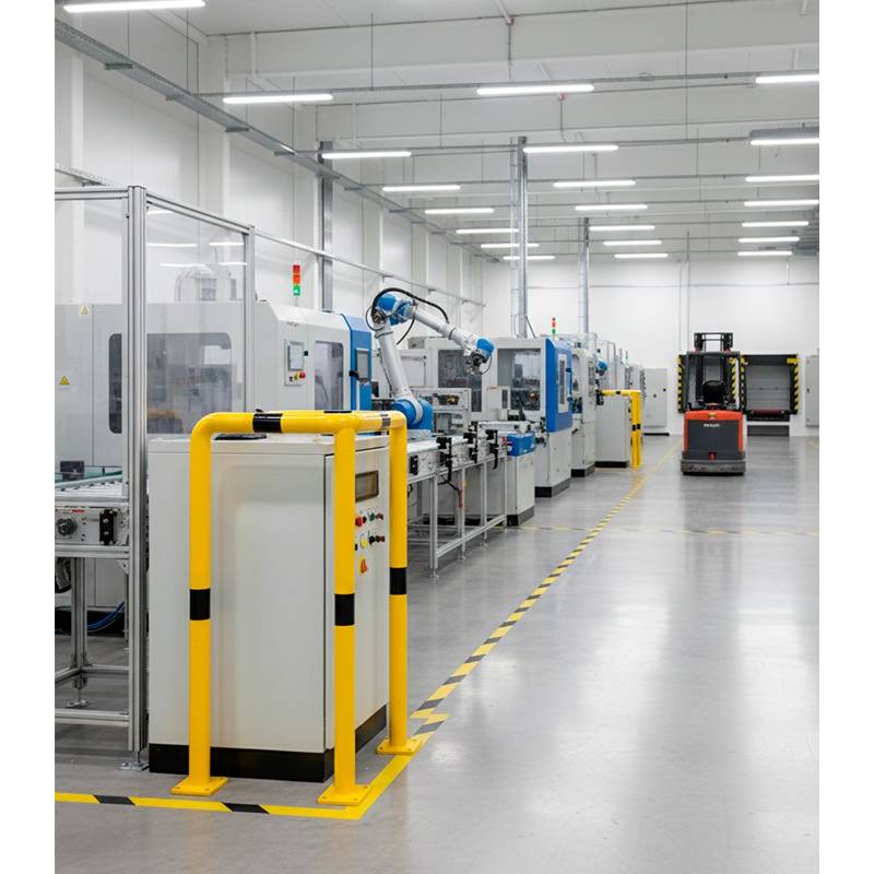 Barrera de Protección para Esquinas de Acero Amarillo con Franjas Negras es una solución eficaz para proteger maquinaria, columnas, cuadros eléctricos o zonas críticas frente a impactos accidentales en entornos industriales, logísticos o de aparcamiento.