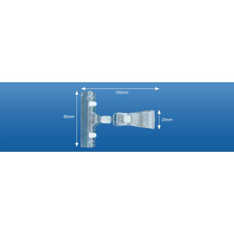 Pinza portaprecio de 25 mm de ancho y 100 mm de alto, con pinza de 80 mm para fijar carteles.