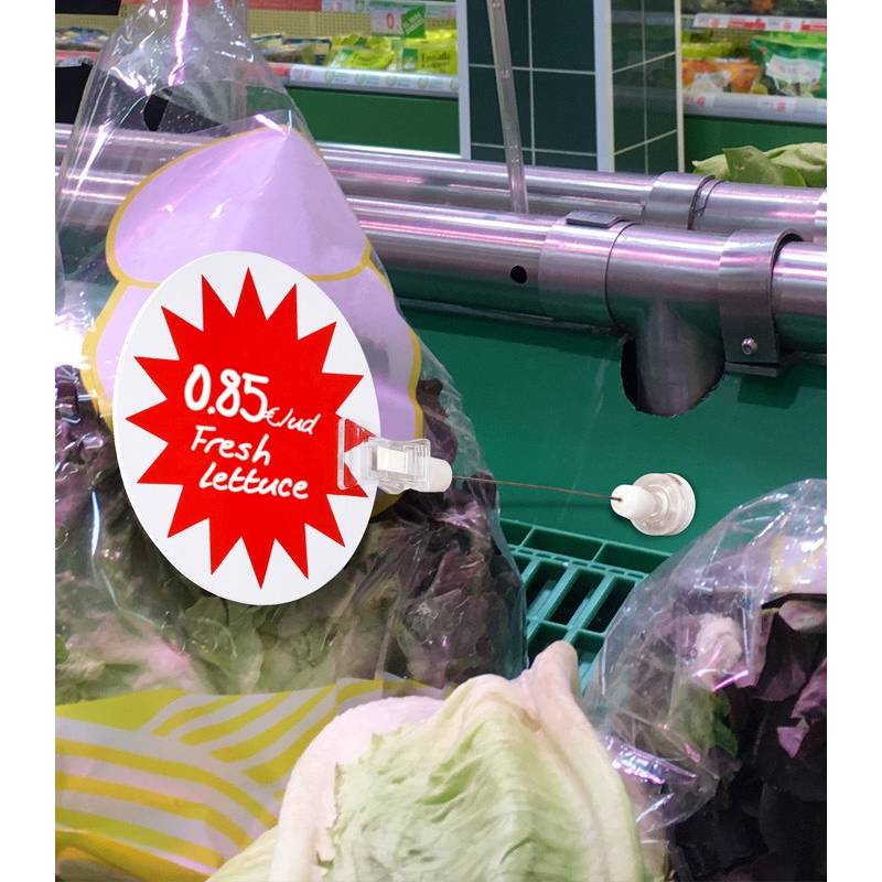 Es perfecta para colocar precios o promociones cerca de productos en supermercados.