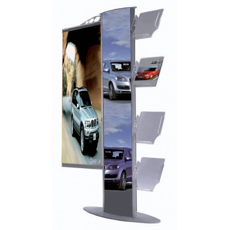 Portafolletos - Tótem, realizado en aluminio.