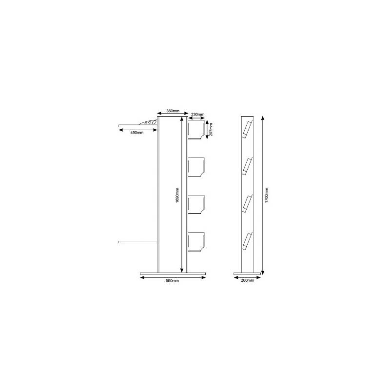 Tamaño: 820x1700x280mm. Medida gráfica Tótem: 324x1685mm. Medida gráfica lateral: 430x1100mm.