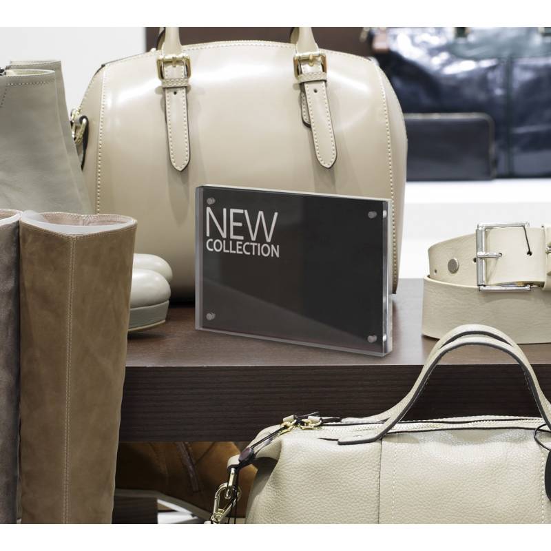 Puede usarse en vertical u horizontal, es perfecto como portaprecios.