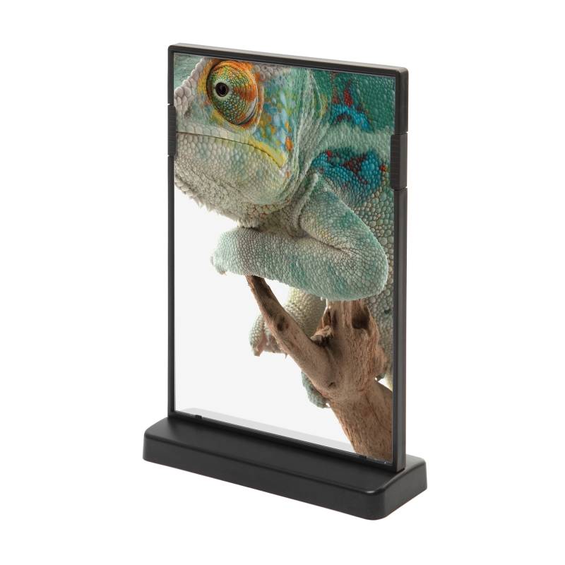 Porta Menú es un display de mesa con inserción de hoja de manera simple desde la parte trasera.