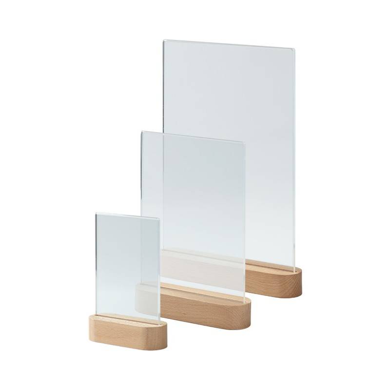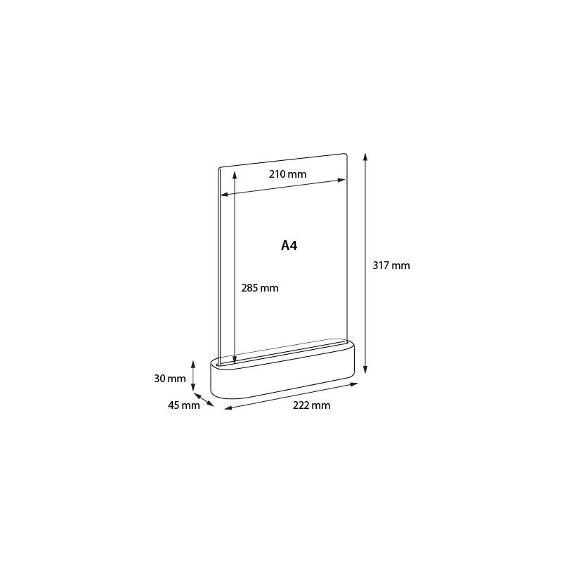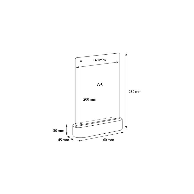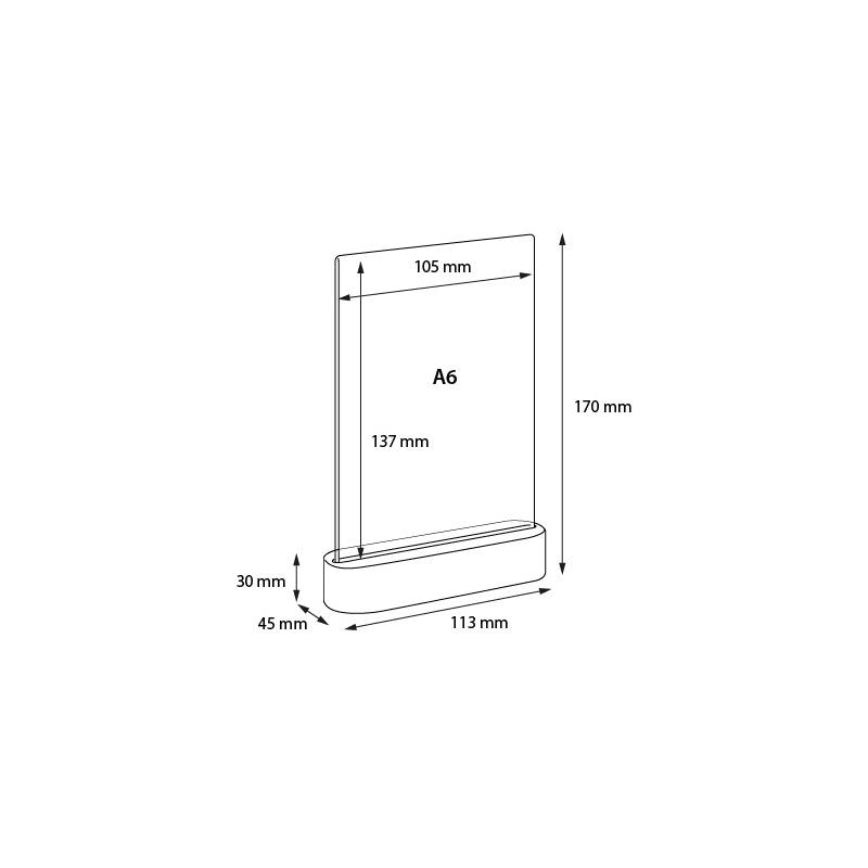 Portagráfica vertical con base redondeada de madera de 3 cm de alto para hoja A6, A5 o A4.