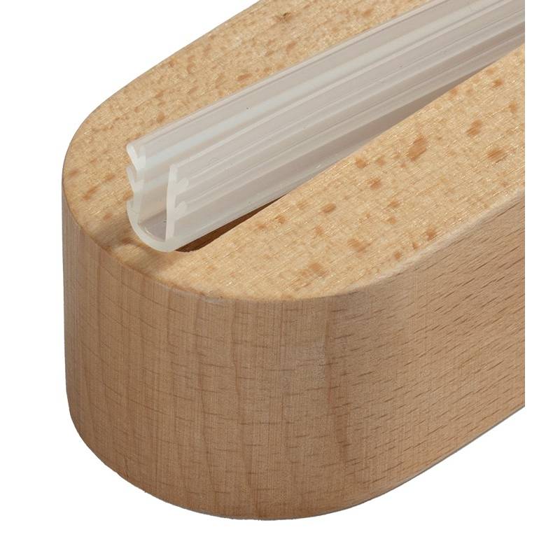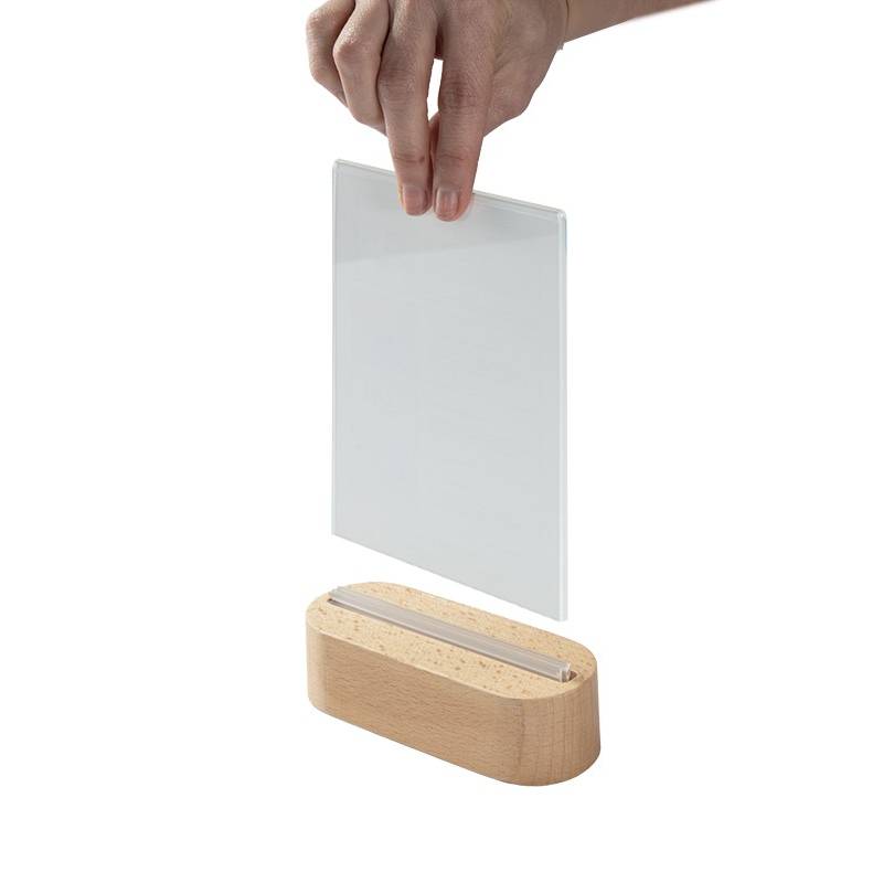 Portagráfica vertical con base redondeada de madera de 3 cm de alto.