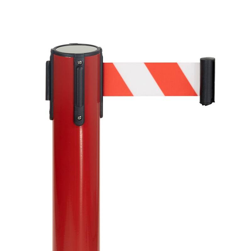 El Poste de seguridad rojo con cinta extensible roja y blanca es la solución ideal para la gestión de colas y la delimitación de espacios de manera práctica y segura. Este poste de color rojo incluye una cinta extensible retráctil de 2 metros con franjas diagonales blancas y rojas de alta visibilidad (5 cm de ancho), asegurando que los límites sean claramente visibles en cualquier entorno.