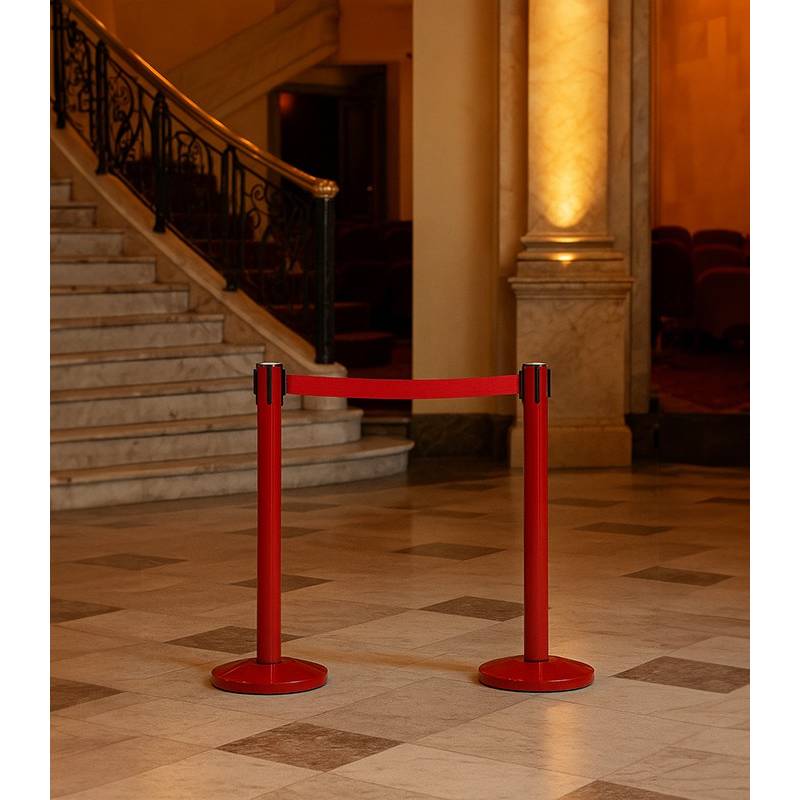 Postes separadores con cinta extensible de 2 metros, perfectos para la gestión de colas y la delimitación de espacios.