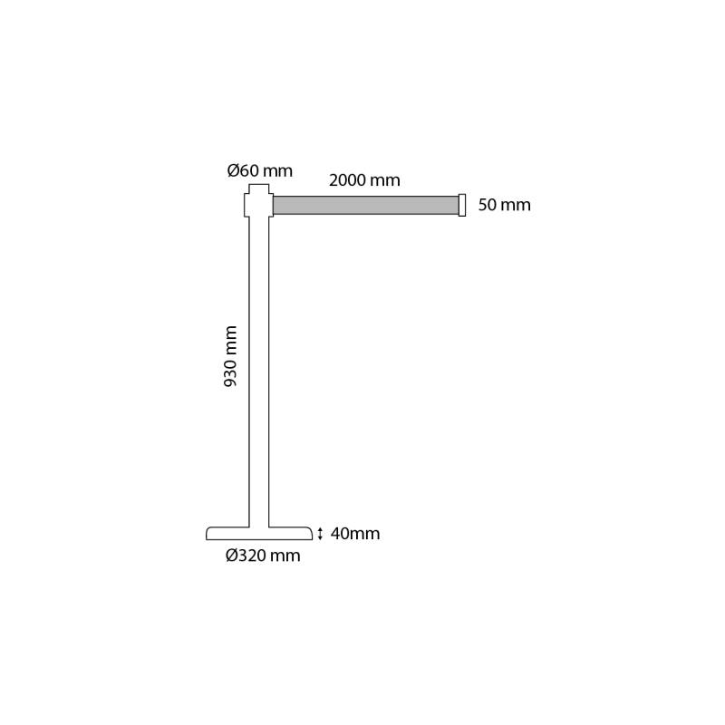La cinta retráctil mide 2 metros de largo por 5 cm de ancho, y dispone de cierre de seguridad junto con 3 vías de adaptación que permiten ampliar el sistema con otros postes.
