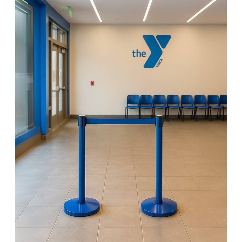 Postes separadores con cinta extensible de 2 metros, perfectos para la gestión de colas y la delimitación de espacios.