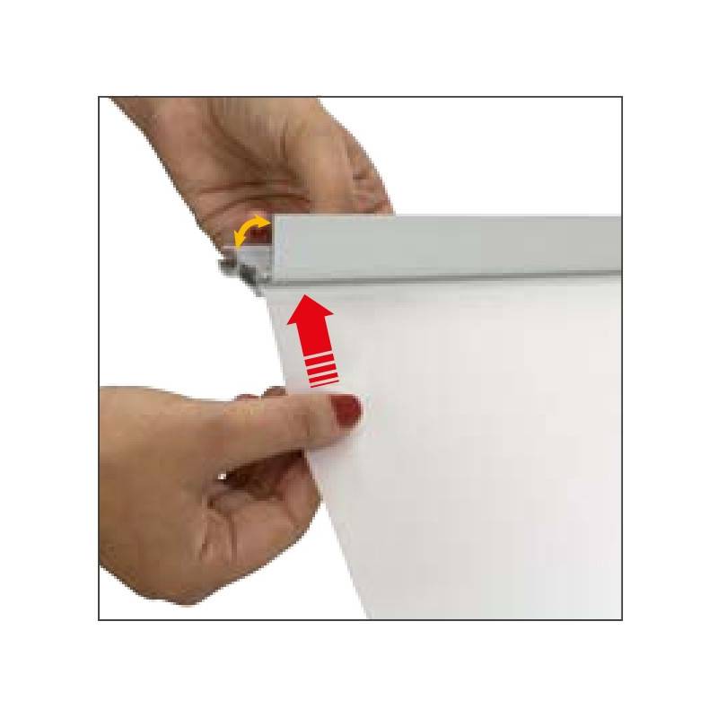 Expositor roll-up autoenrollable de aluminio. Perfil superior de pinza. Incluye bolsa de transporte sin acolchar.