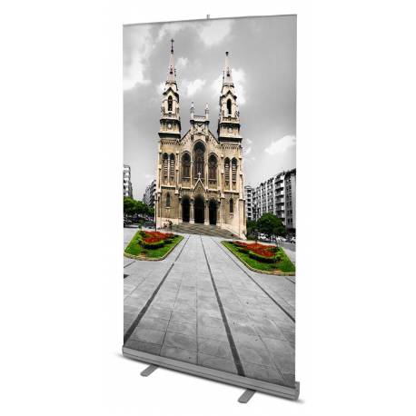 Expositor autoenrollable de aluminio. Perfil superior de pinza para un más rápido montaje.