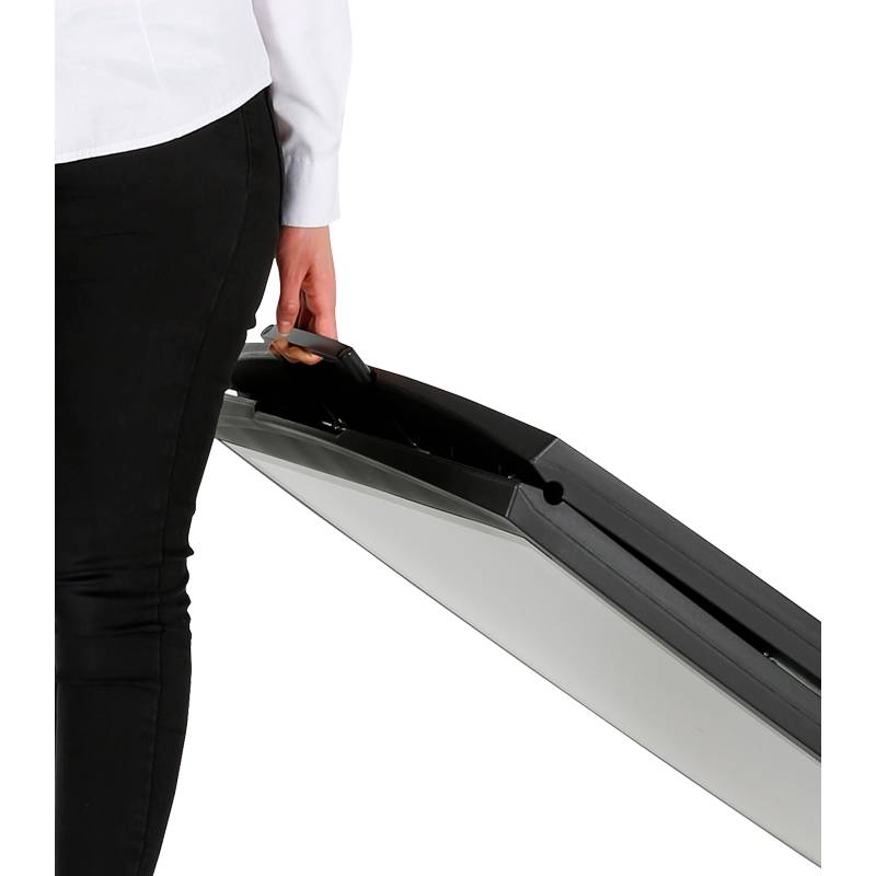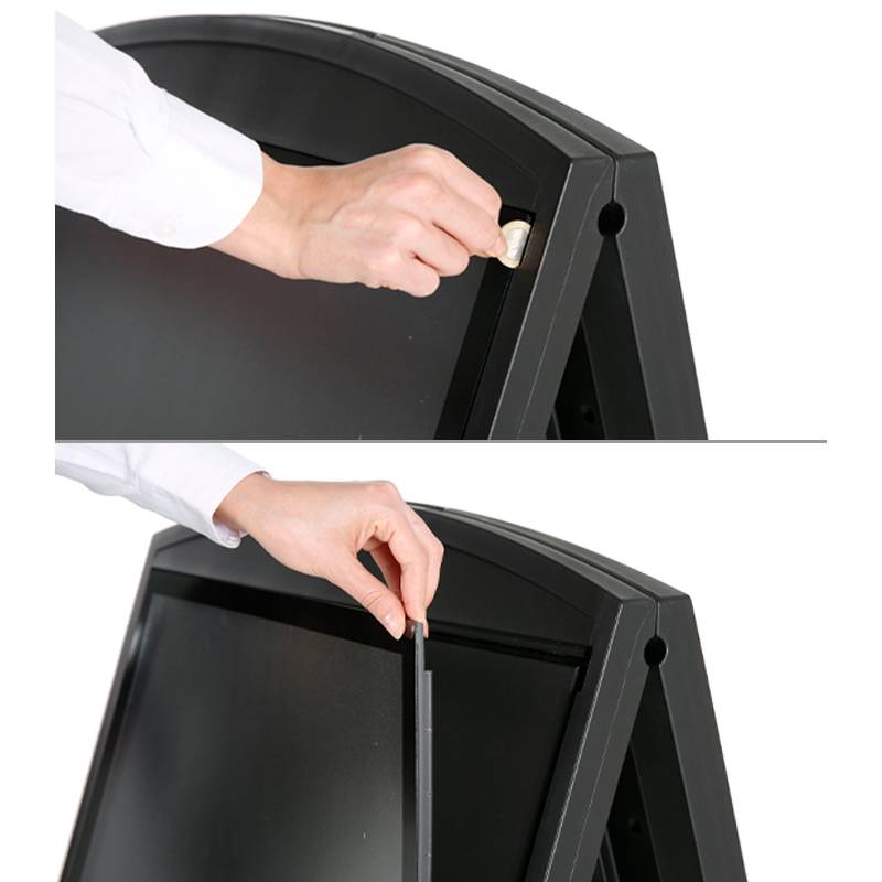 Cambio de carteles sencillo y rápido gracias a su lámina protectora de PET resistente a los rayos UV.