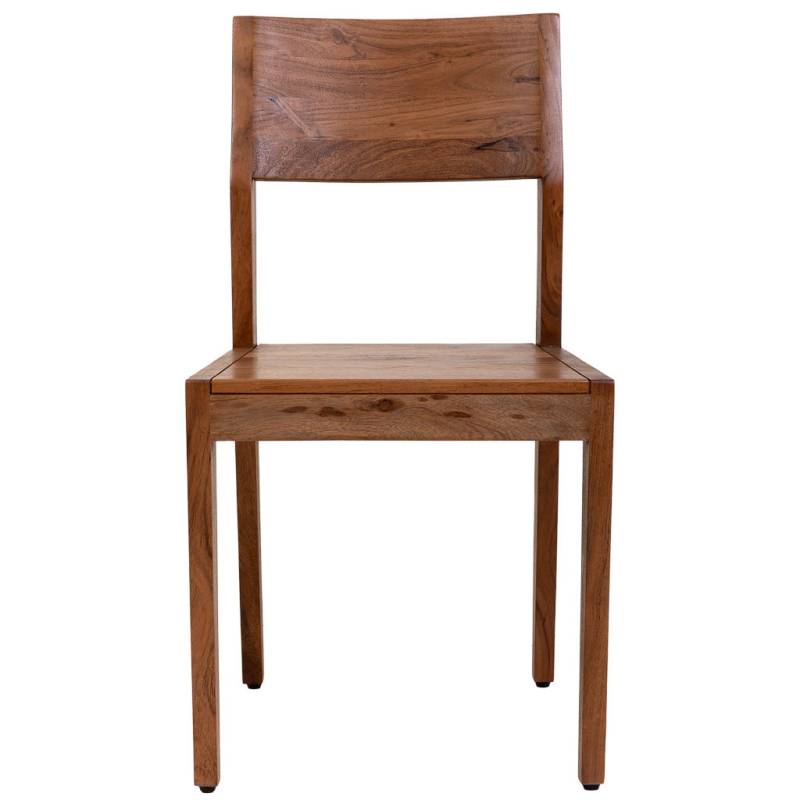 Con un diseño elegante, esta silla de comedor está fabricada en madera de acacia con un acabado color nogal.