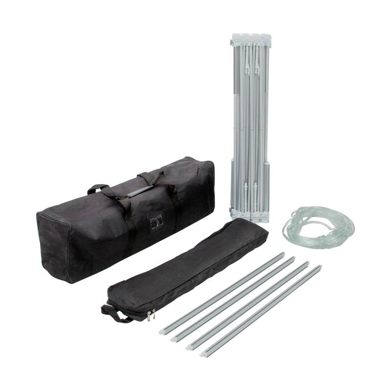 Compuesto por con un marco de aluminio que resulta una opción excelente para ferias y eventos temporales gracias a su diseño cuidado, ligereza y rápido montaje.