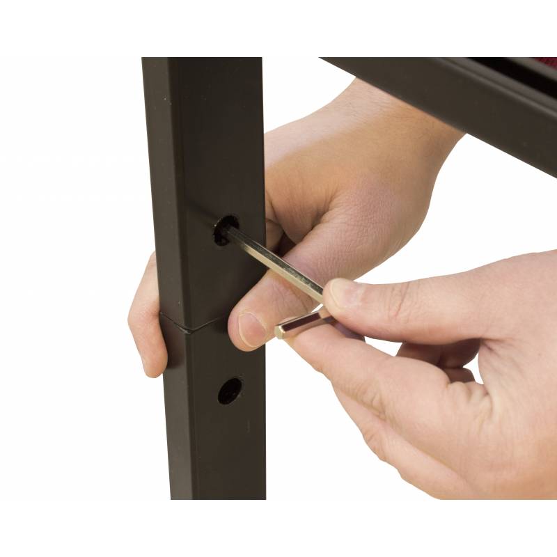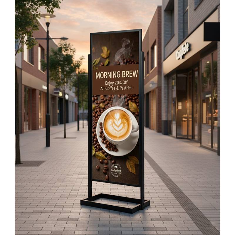 Este soporte para gráficas de metal suele utilizarse en zonas de mucho transito como pasillos de centros comerciales, ya que es muy resistente. h