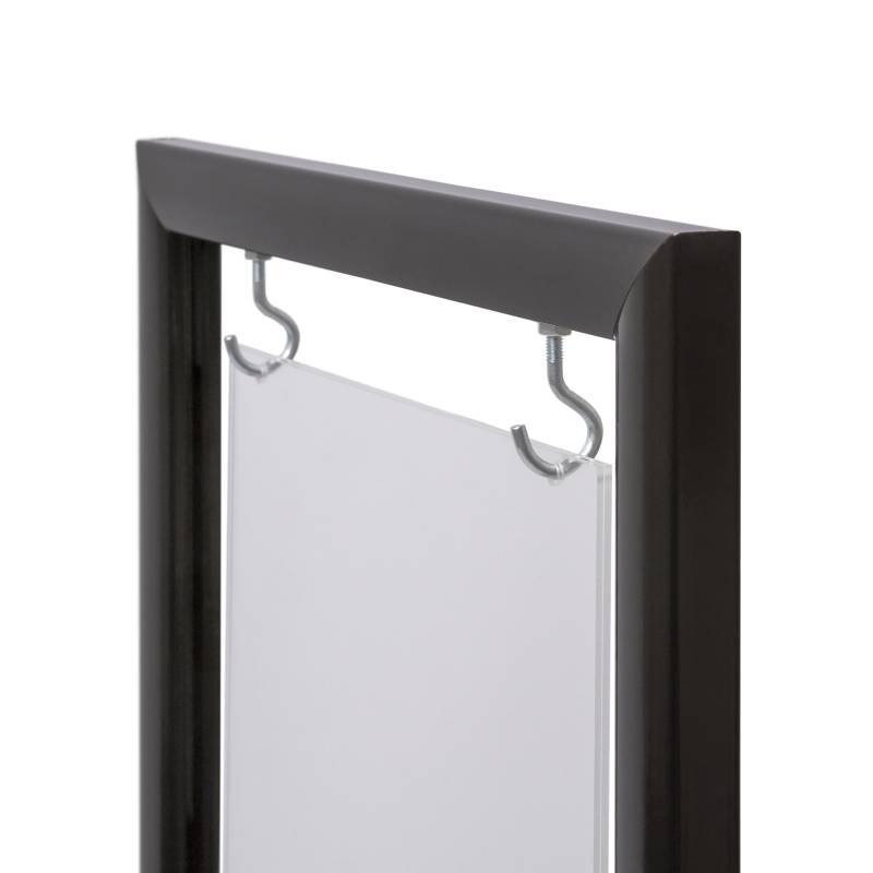 El sistema colgante de sujeción del marco, le aporta muchísima estabilidad y lo hace ideal para comercios, restauración y cualquier lugar público.