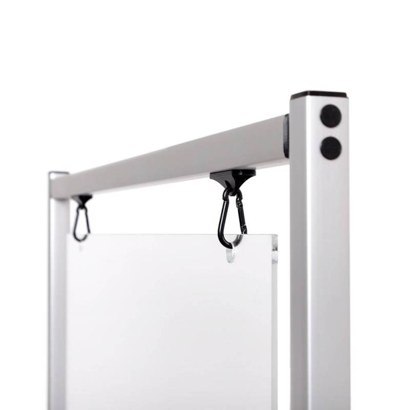 El sistema colgante de sujeción del marco, le aporta muchísima estabilidad y lo hace ideal para comercios, restauración y cualquier lugar público.