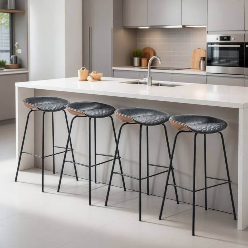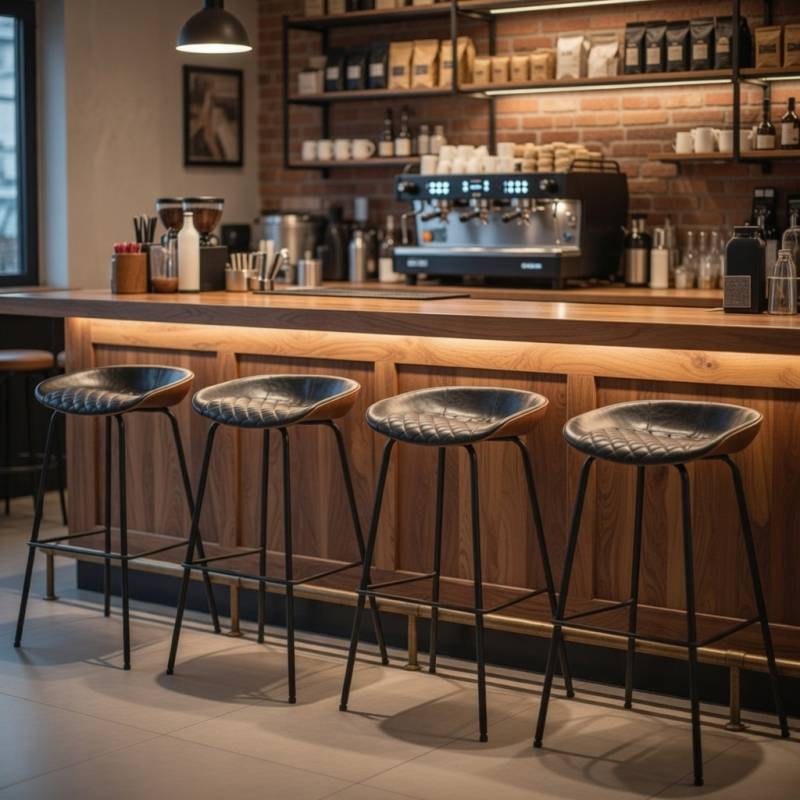 TABURETE METALICO CON ASIENTO EN SIMILPIEL MARRON y NEGRO