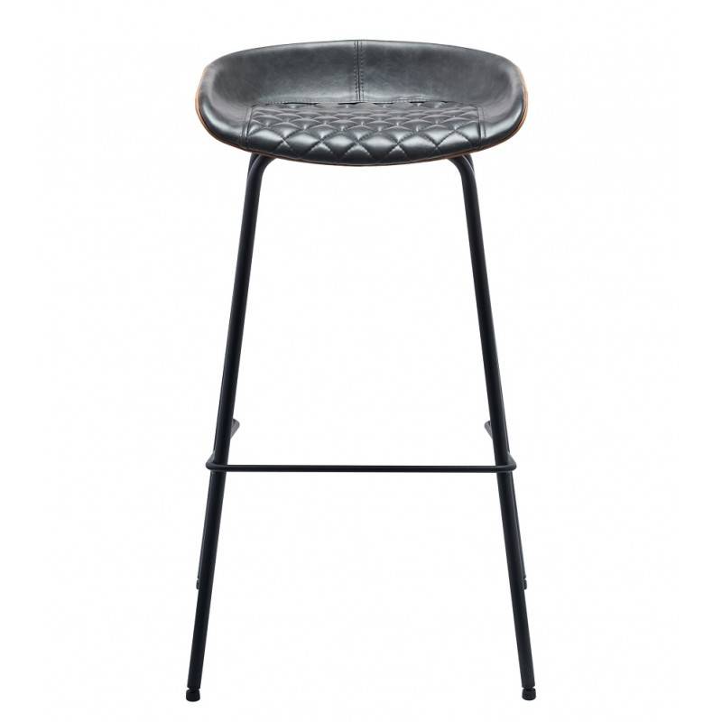 Taburete de diseño, armazón metálico con acabado negro, asiento tapizado en similpiel, exterior en similpiel marrón e interior en negro de rombos.