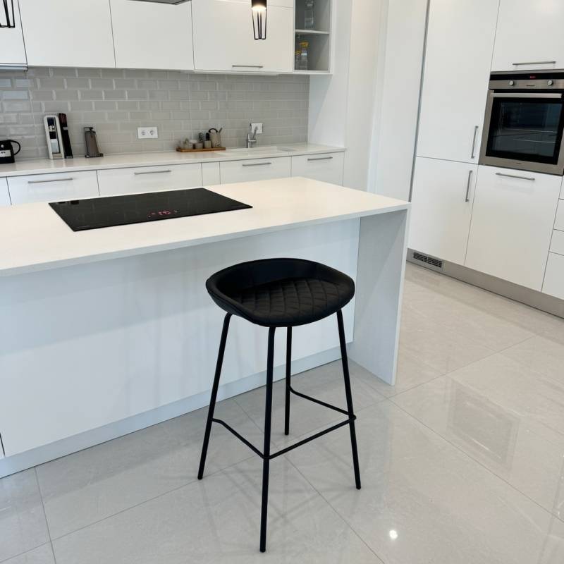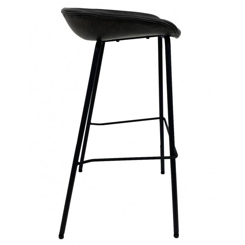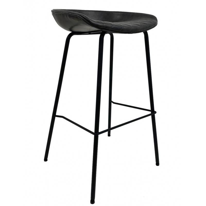 Taburete de diseño, armazón metálico con acabado negro, asiento tapizado en similpiel.