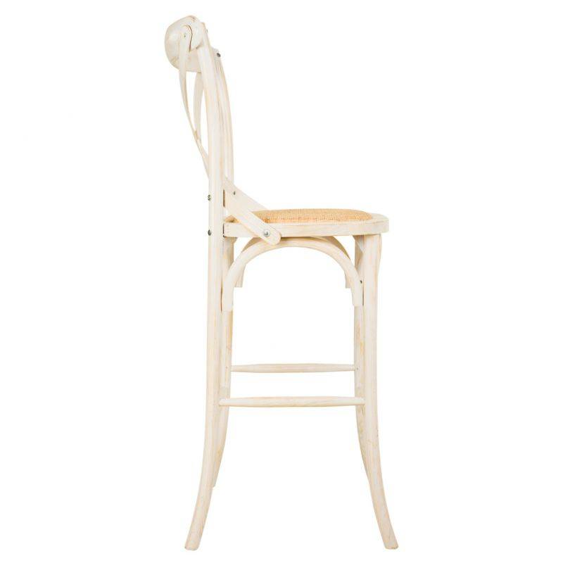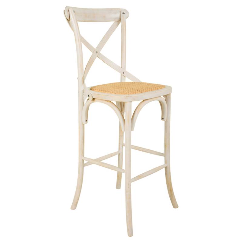 TABURETE ALTO EN MADERA DE ABEDUL COLOR BLANCO Y ASIENTO EN RATAN